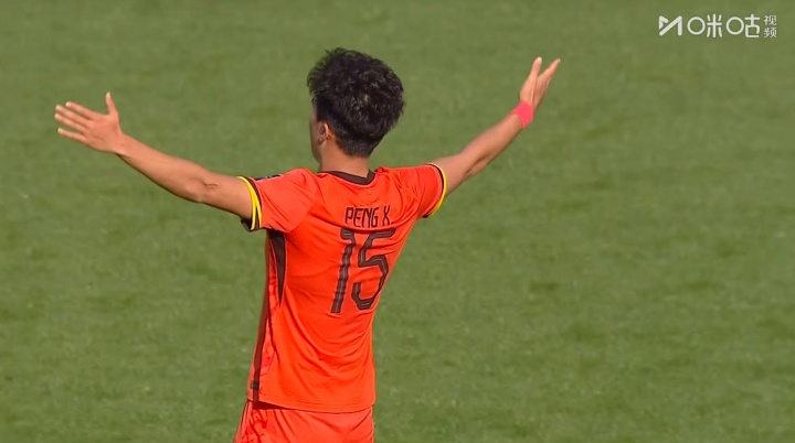 运气游戏-逆足爆射攻破袋鼠球门!彭啸破门后双手张开模仿贝林厄姆庆祝
